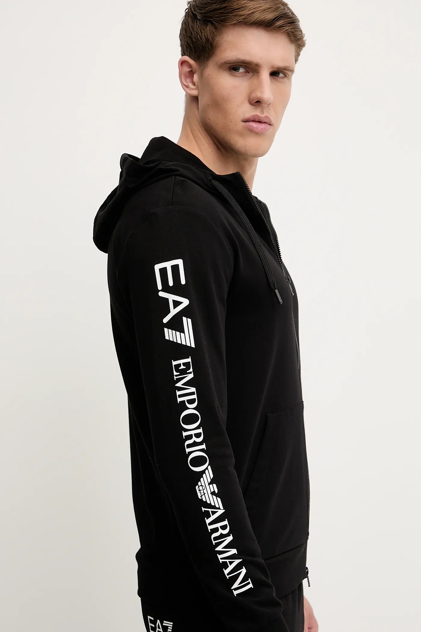 EA7 Emporio Armani bluza bawełniana męska kolor czarny z kapturem z nadrukiem AF13512.7M000568