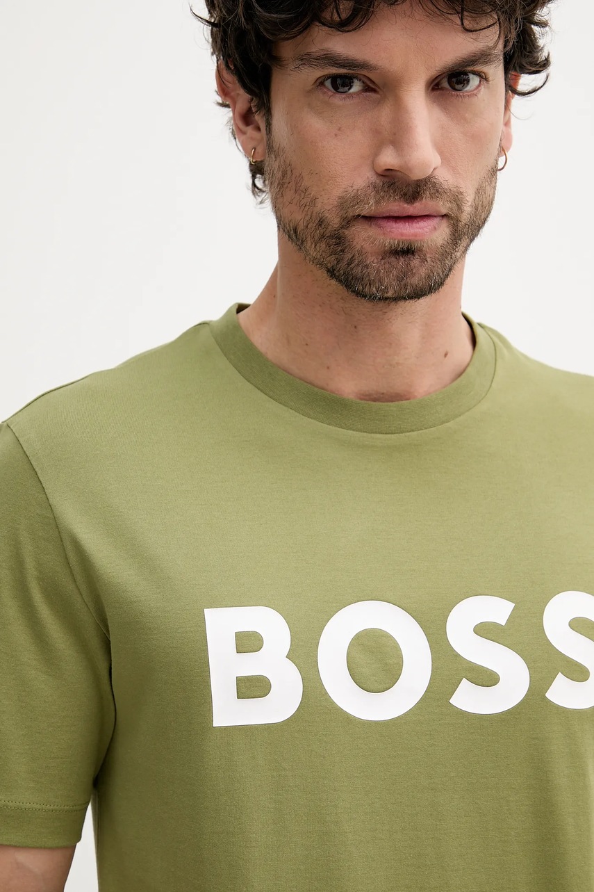 BOSS t-shirt bawełniany kolor zielony z nadrukiem