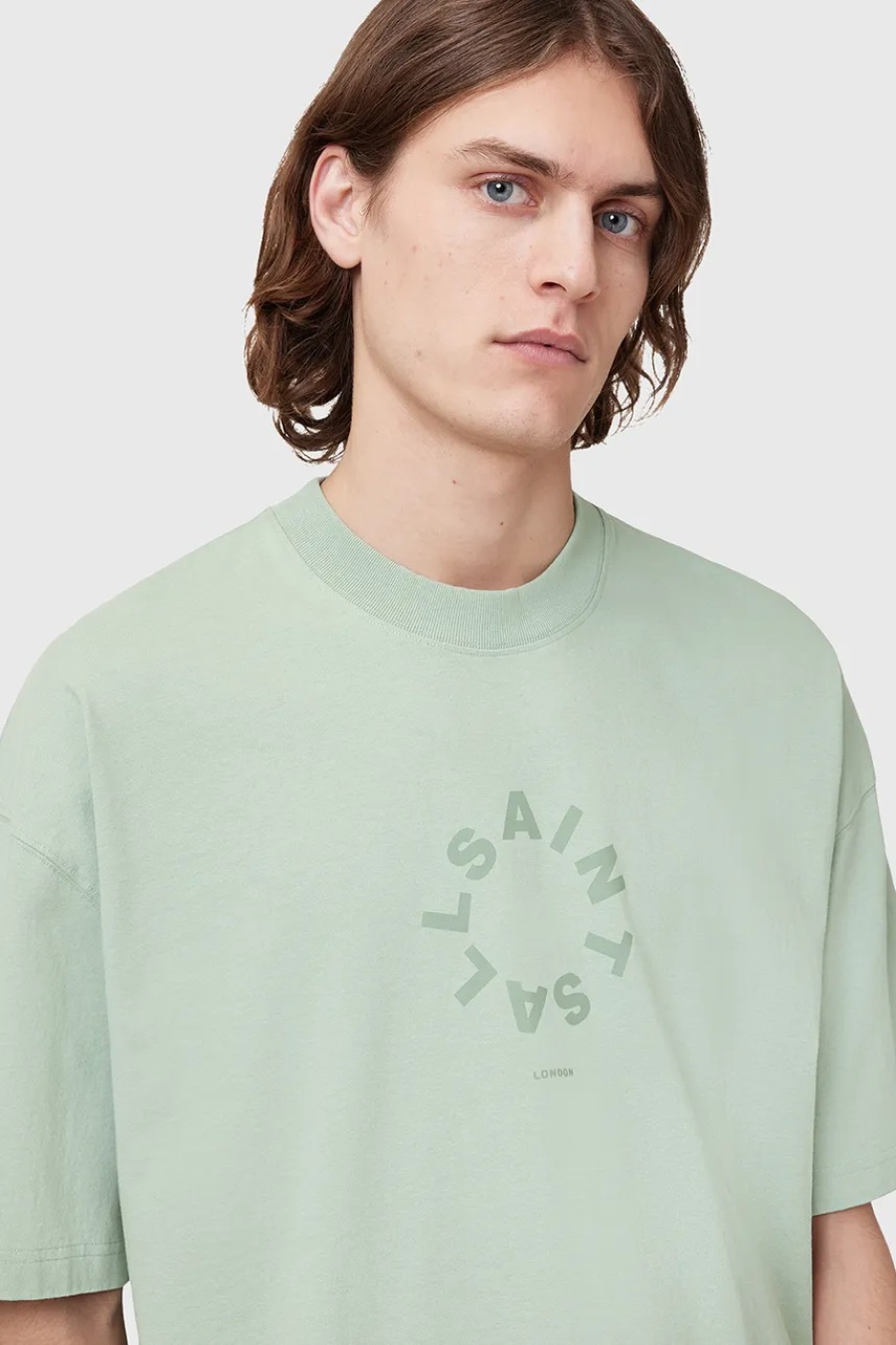 AllSaints t-shirt bawełniany TIERRA SS CREW męski kolor zielony z nadrukiem M072PB