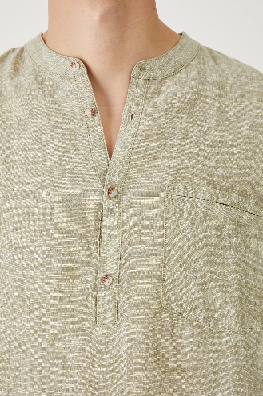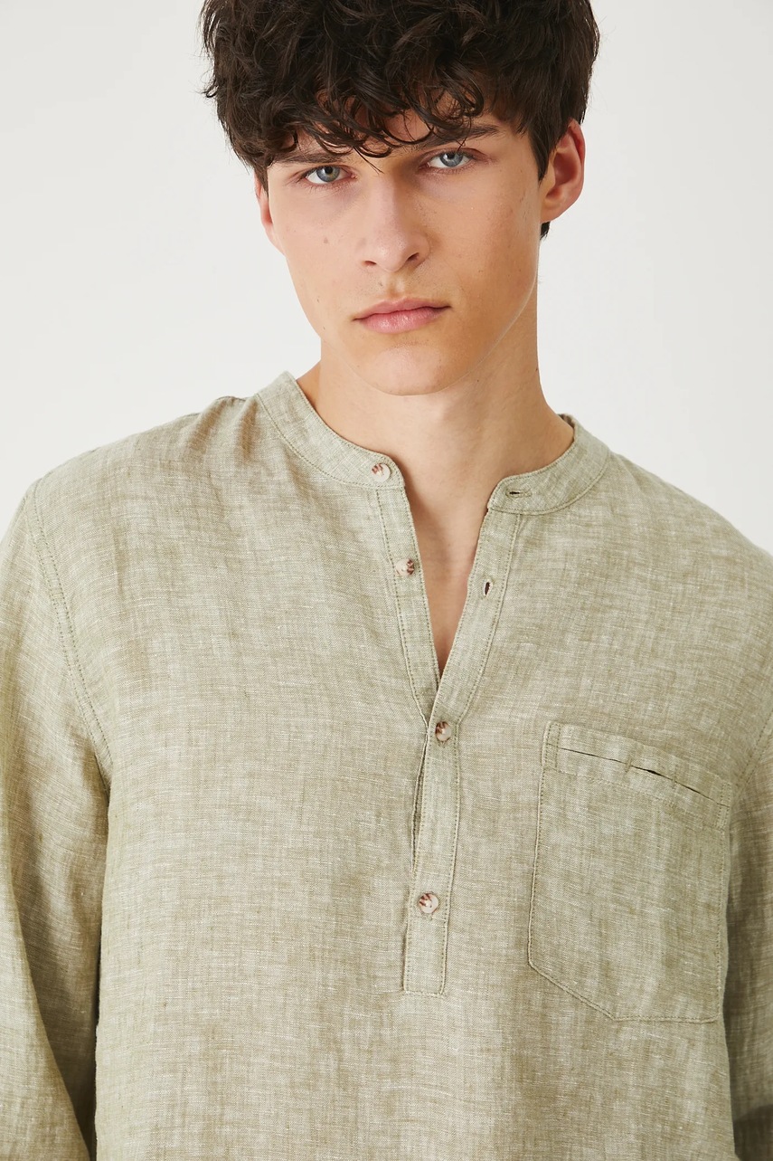Medicine koszula lniana męska kolor zielony regular ze stójką