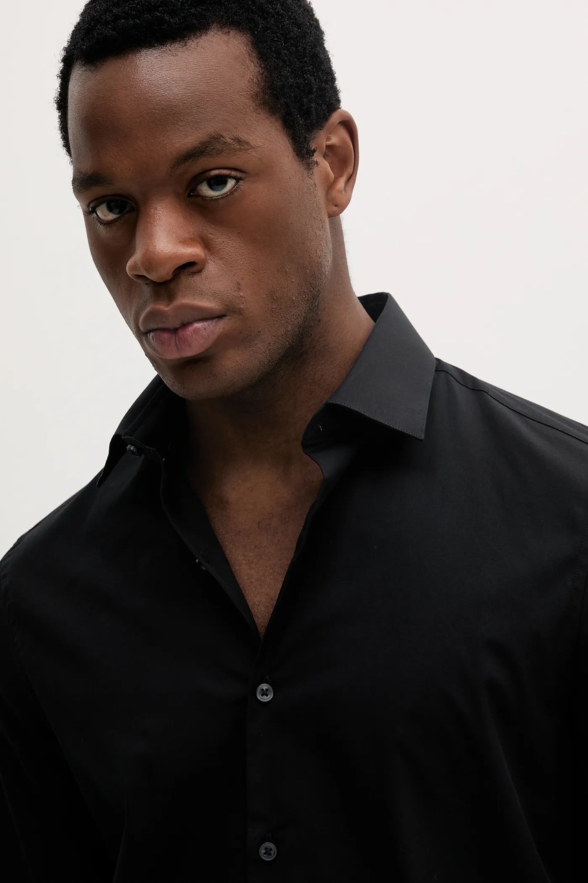 Calvin Klein koszula męska kolor czarny slim z kołnierzykiem klasycznym LV019EU000