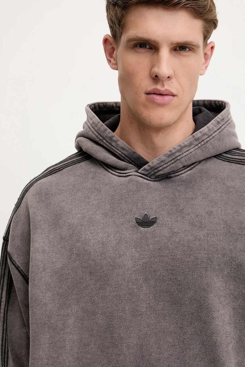 adidas Originals bluza bawełniana Essential męska kolor szary z kapturem gładka JD0245