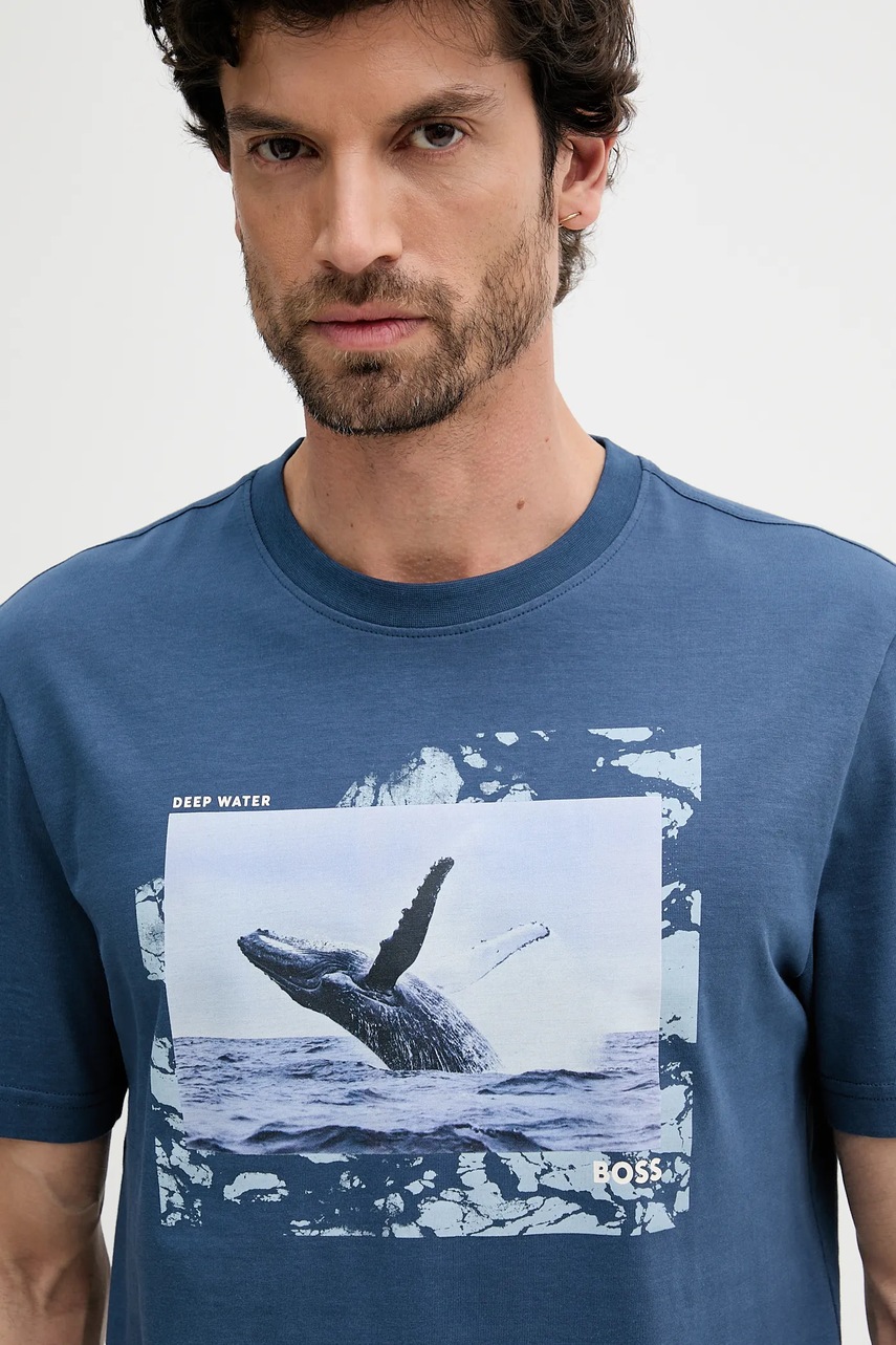 BOSS Orange t-shirt bawełniany męski kolor granatowy z nadrukiem 50539187