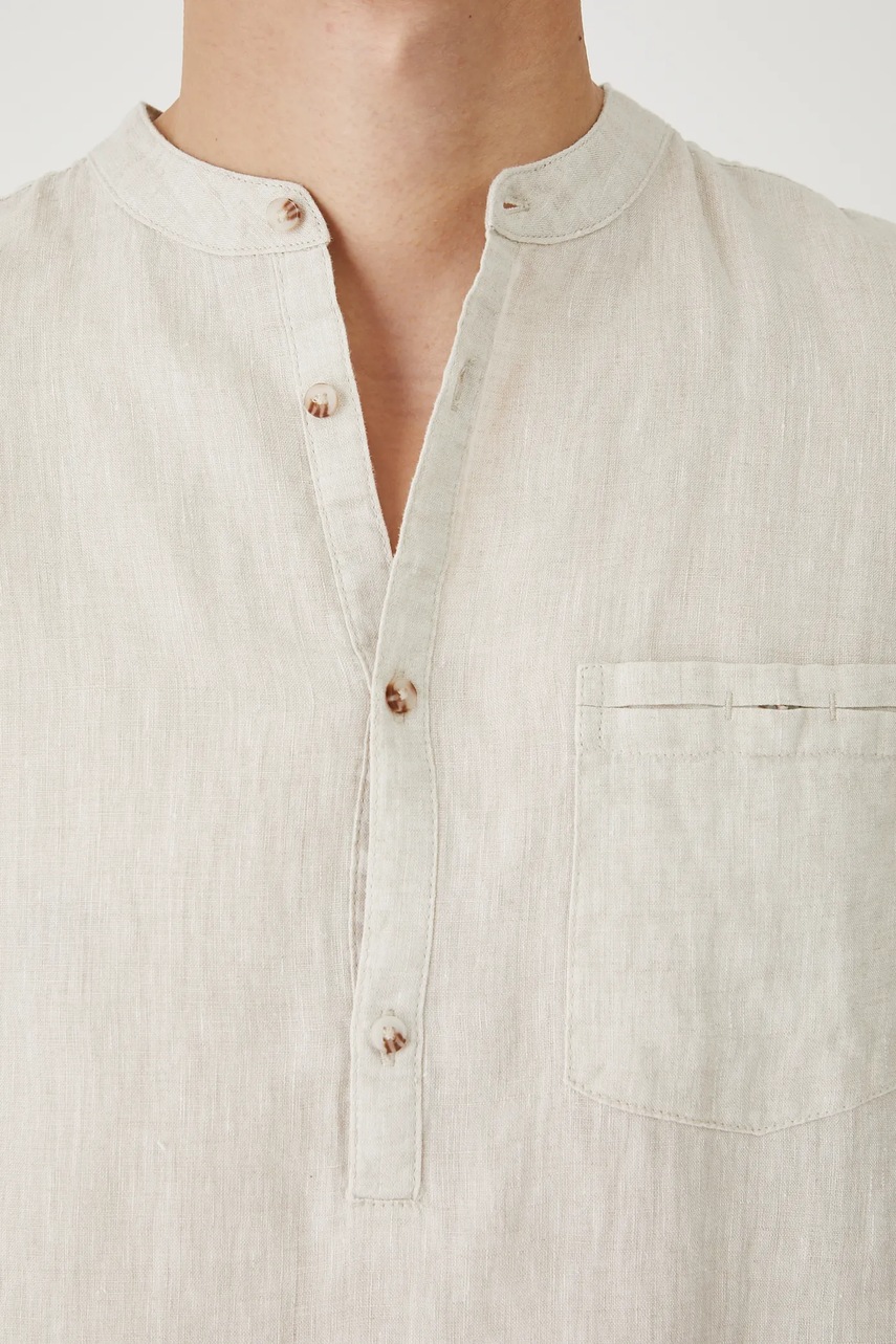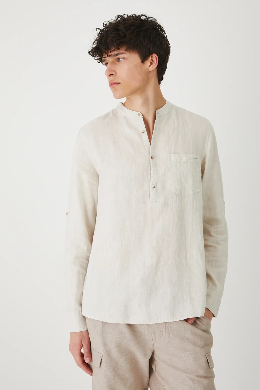 Medicine koszula lniana męska kolor beżowy regular ze stójką