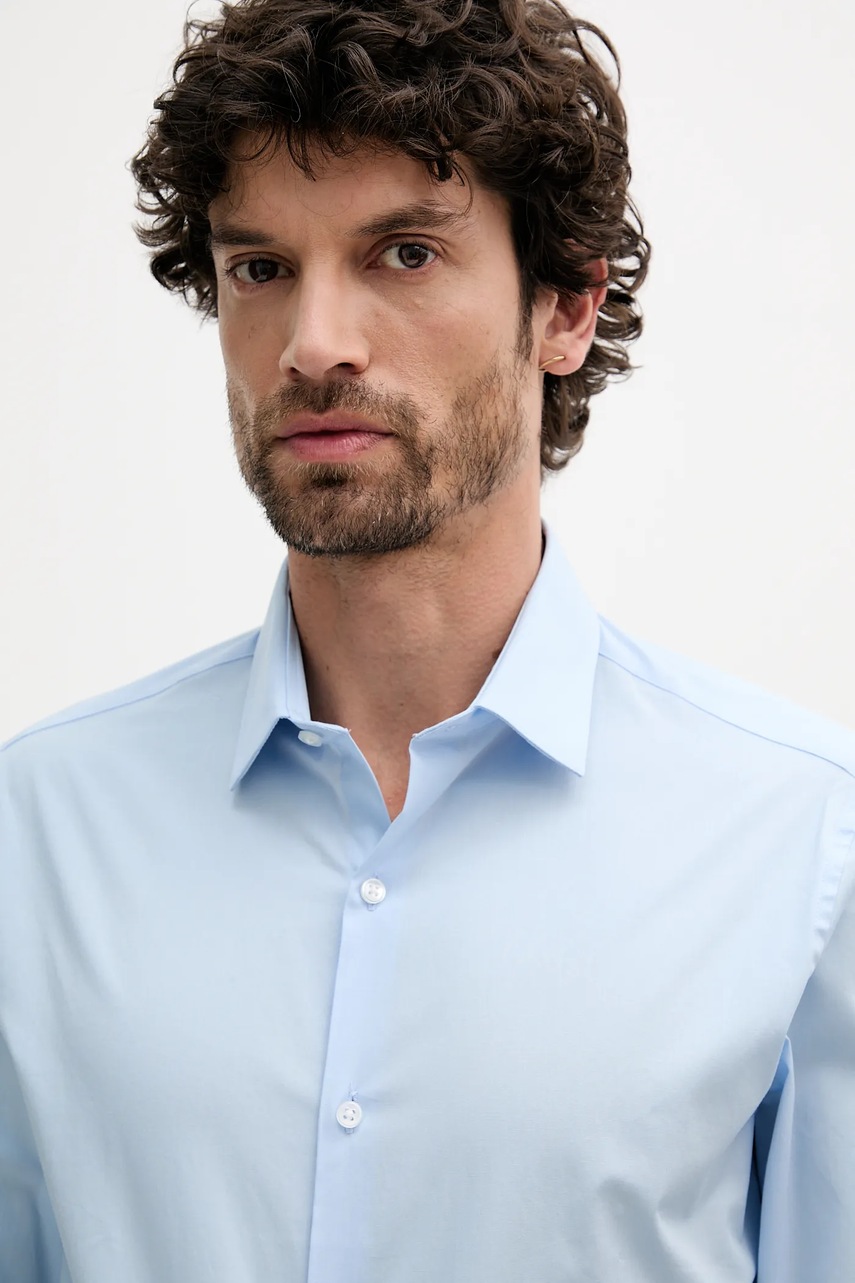 Calvin Klein koszula męska kolor niebieski slim z kołnierzykiem klasycznym LV019EU000