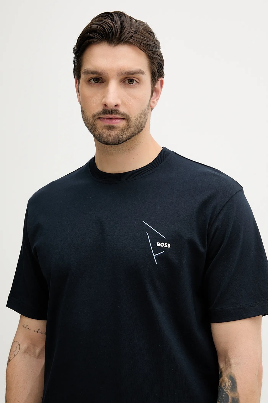 BOSS Orange t-shirt bawełniany męski kolor granatowy z nadrukiem 50546374