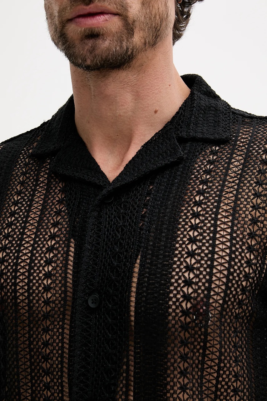 Lindbergh koszula męska kolor czarny regular 30-203727