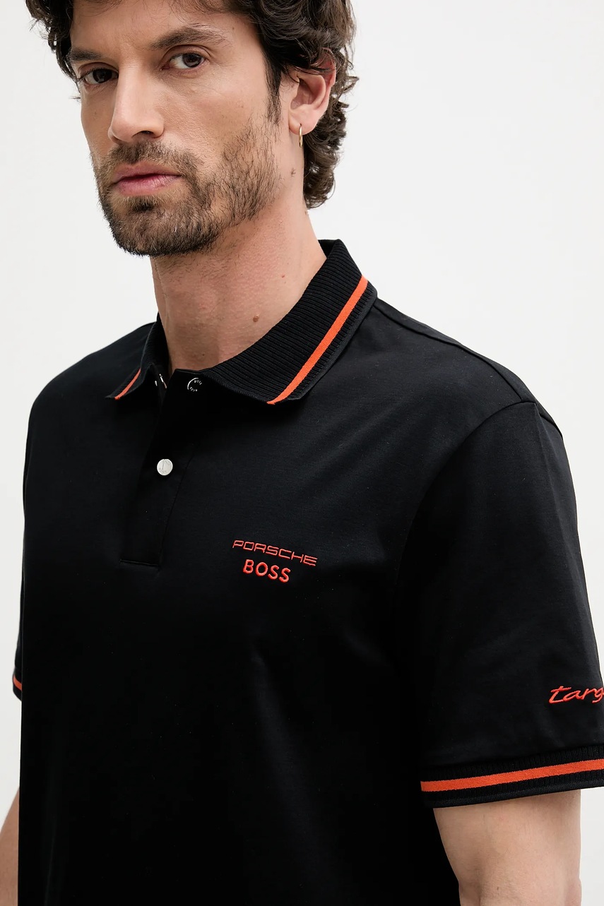 BOSS polo bawełniane męski kolor czarny z aplikacją 50543257
