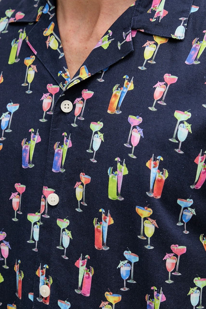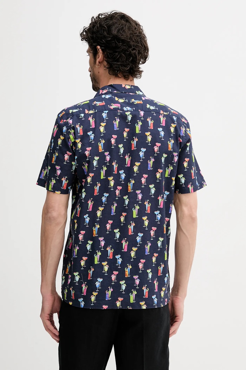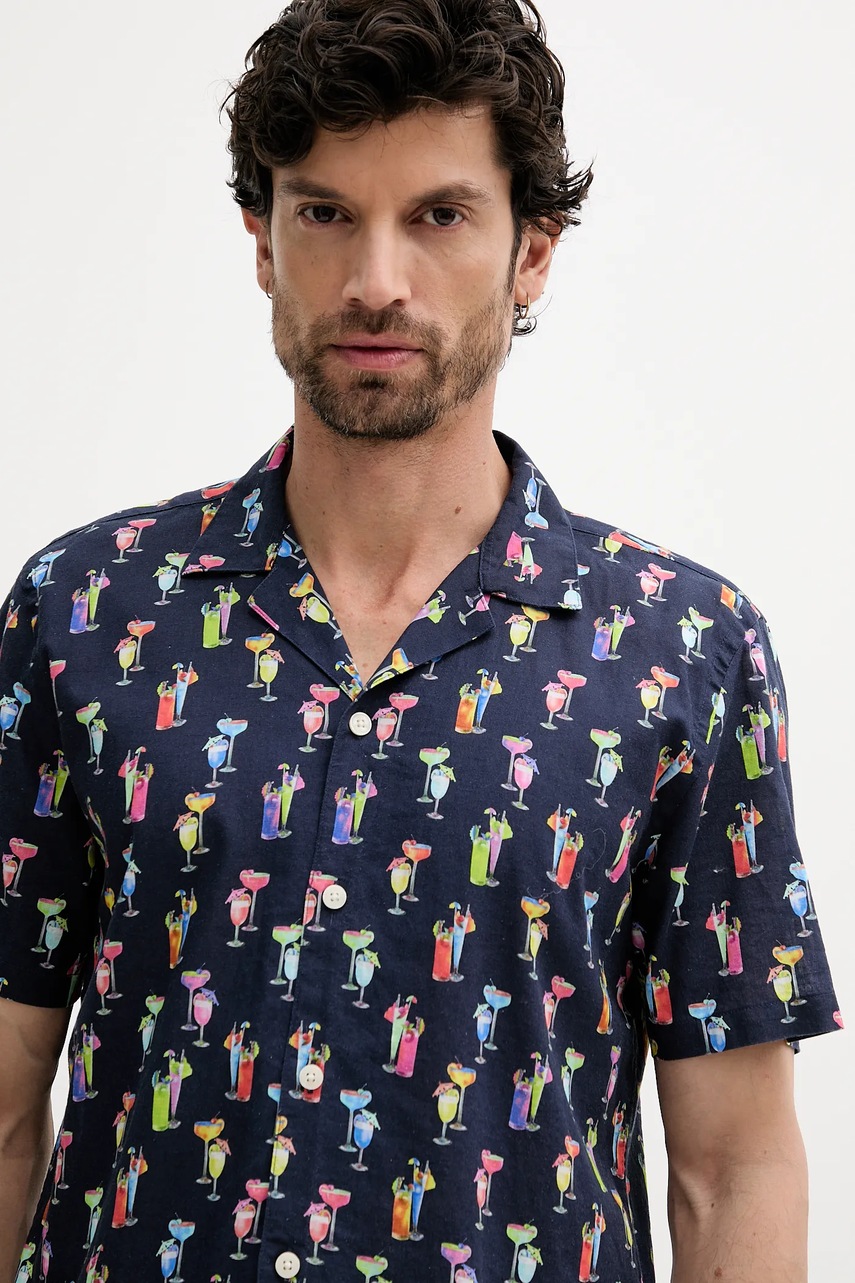 Lindbergh koszula lniana męska kolor granatowy relaxed 30-203755
