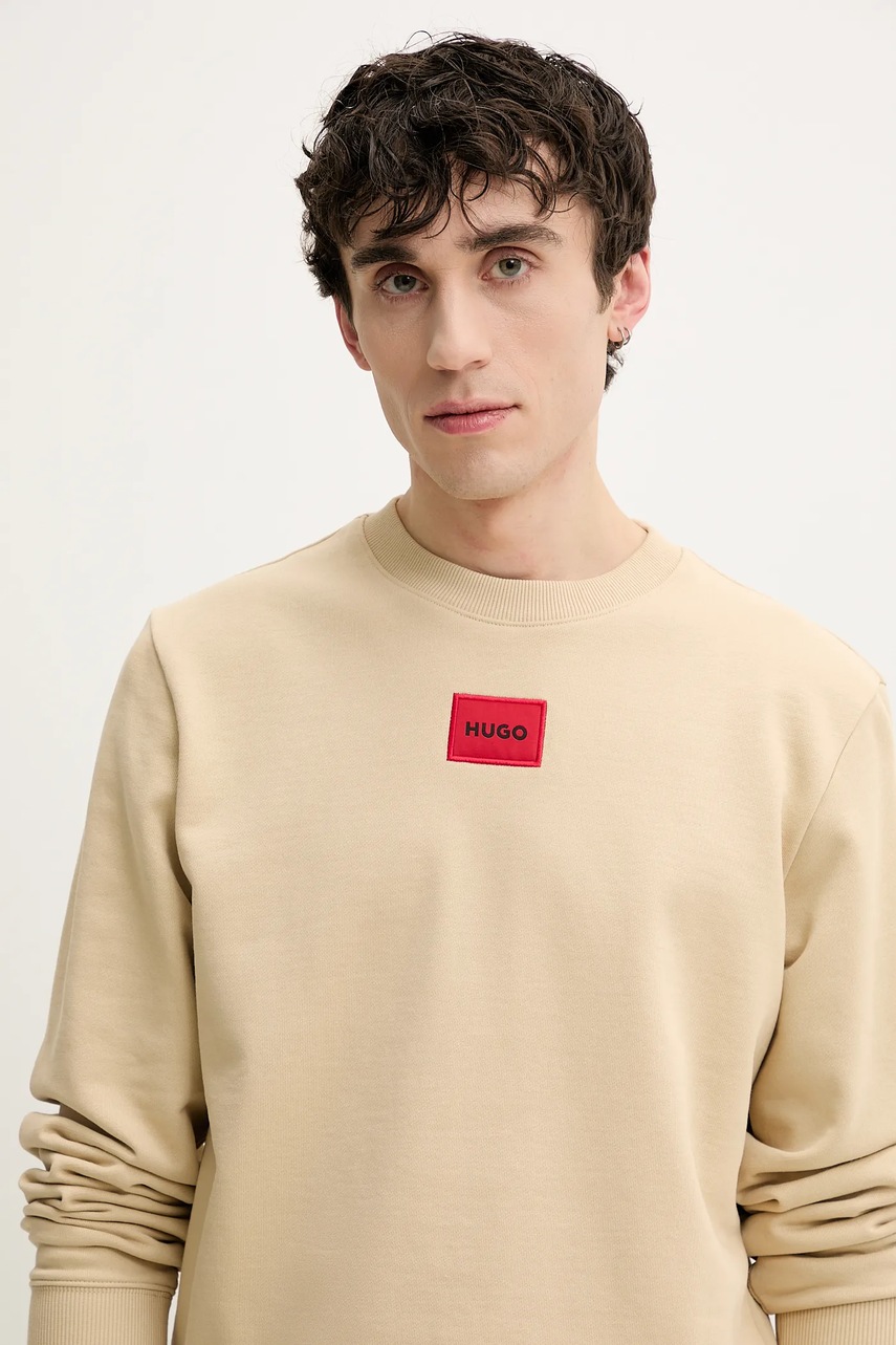HUGO bluza bawełniana męska kolor beżowy z aplikacją 50447964