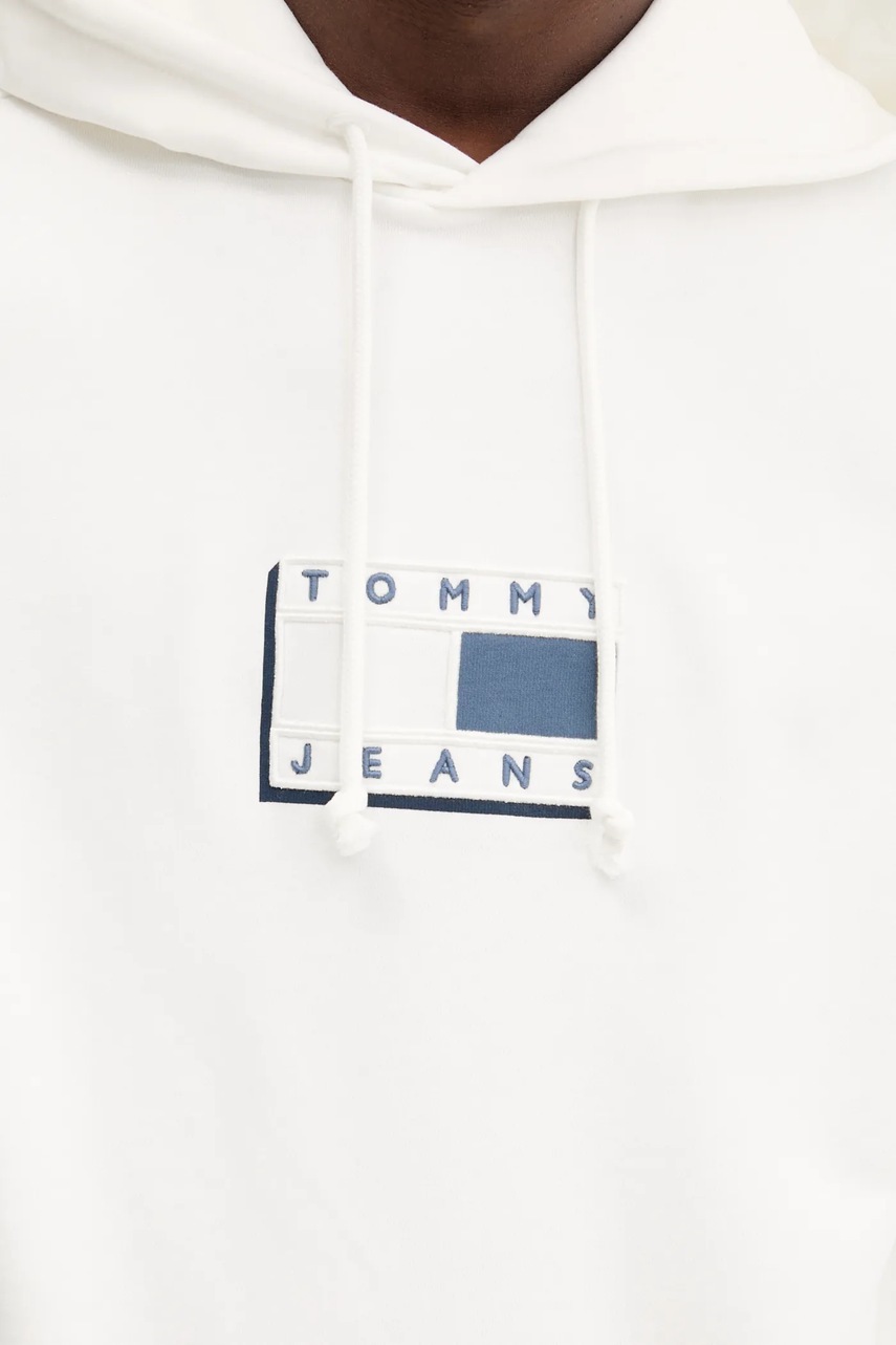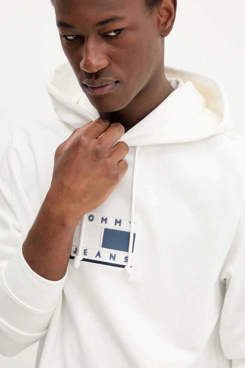 Tommy Jeans bluza bawełniana męska kolor biały z kapturem z aplikacją DM0DM21623