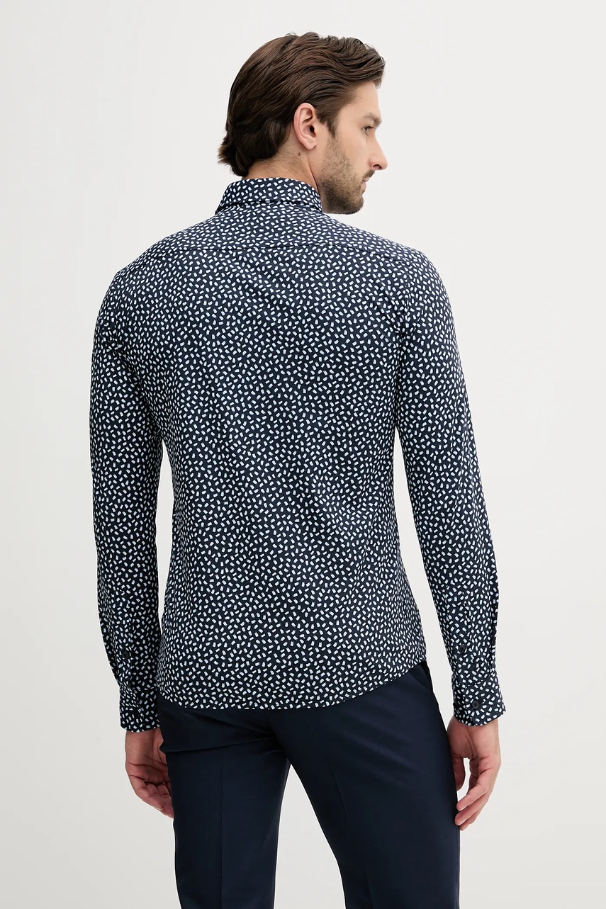 - Koszula w fasonie slim jest dopasowana do ciała, naturalnie podkreśla sylwetkę, zapewniając jednocześnie komfort noszenia.