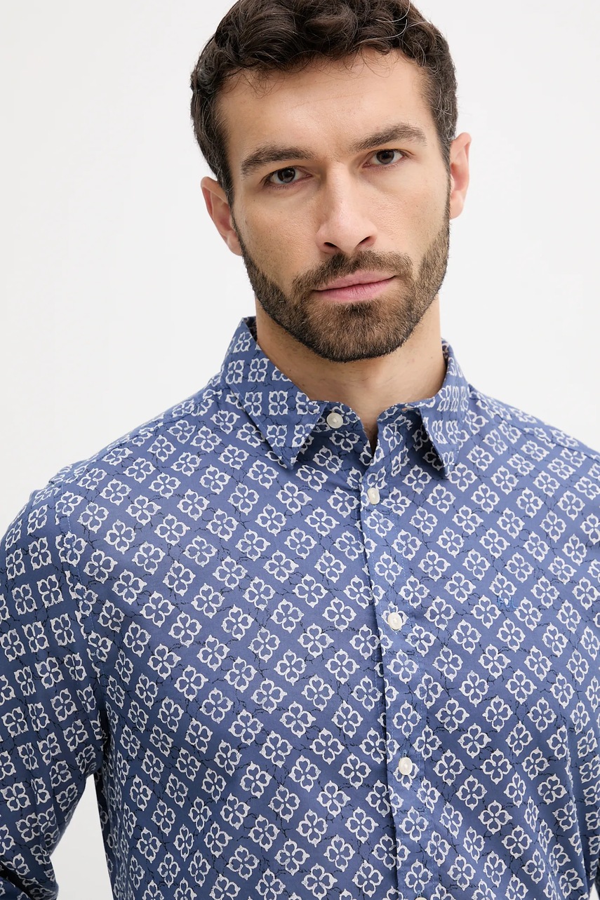 Pepe Jeans koszula bawełniana męska kolor niebieski regular z kołnierzykiem klasycznym PM309092