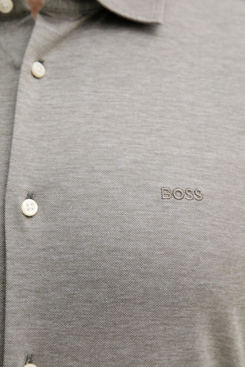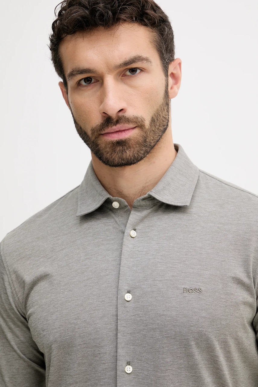 BOSS Orange koszula bawełniana męska kolor zielony slim z kołnierzykiem włoskim 50519748