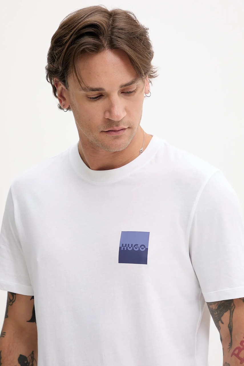 HUGO t-shirt bawełniany męski kolor biały z nadrukiem 50544458