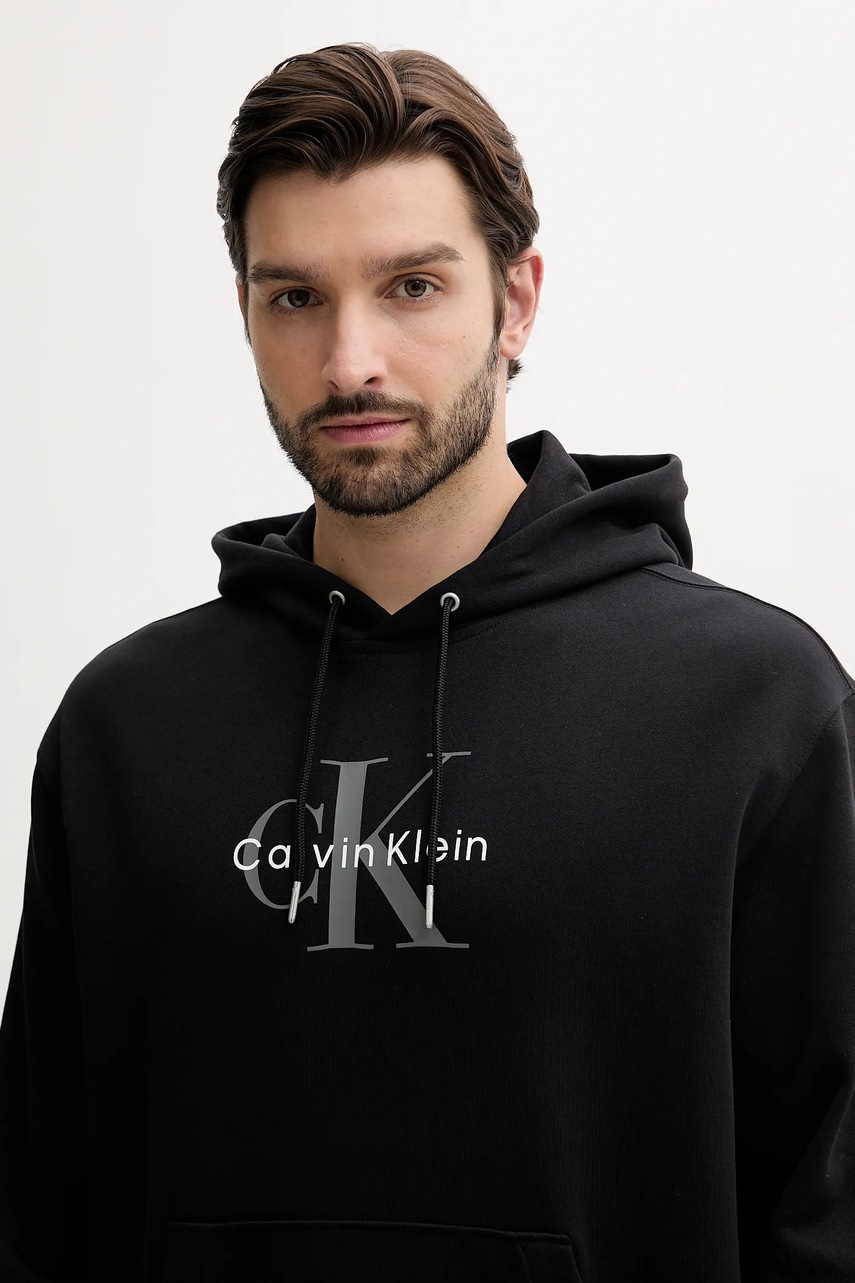 Calvin Klein Jeans bluza męska kolor czarny z kapturem z nadrukiem LV04RC282G