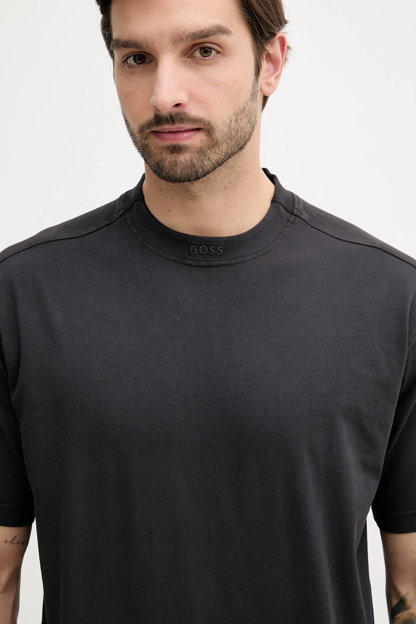 BOSS Orange t-shirt bawełniany męski kolor czarny gładki 50521805