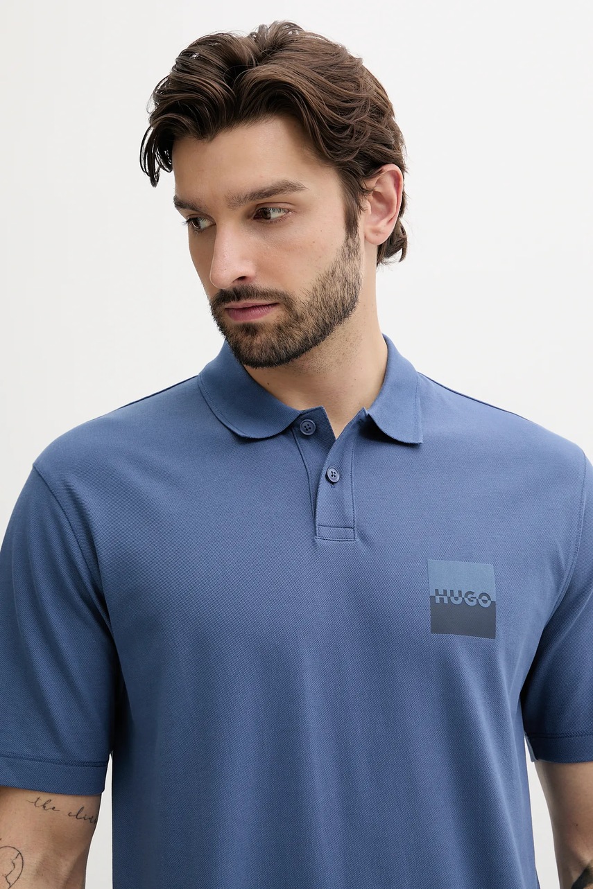 HUGO polo bawełniane męski kolor niebieski z aplikacją 50542834