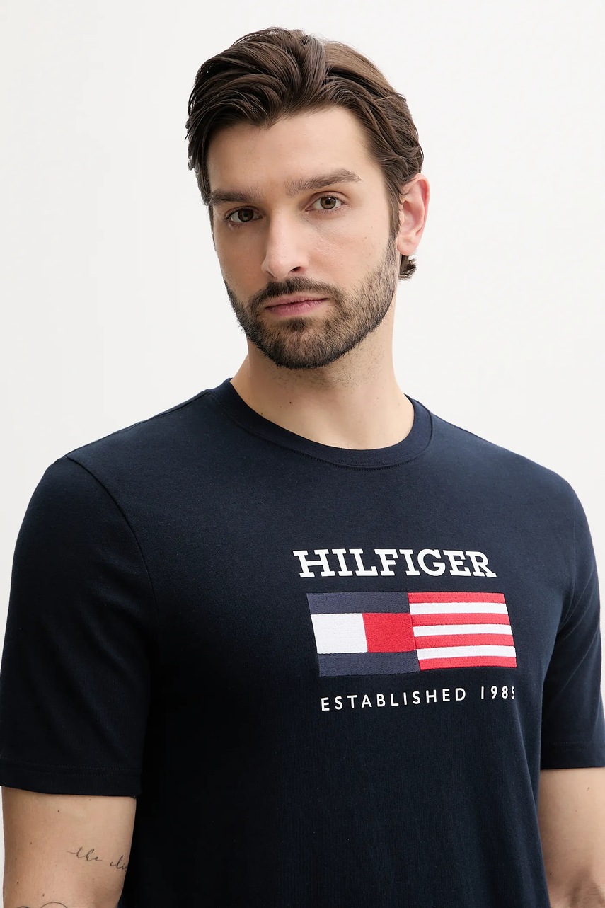 Tommy Hilfiger t-shirt bawełniany męski kolor granatowy z nadrukiem MW0MW39843