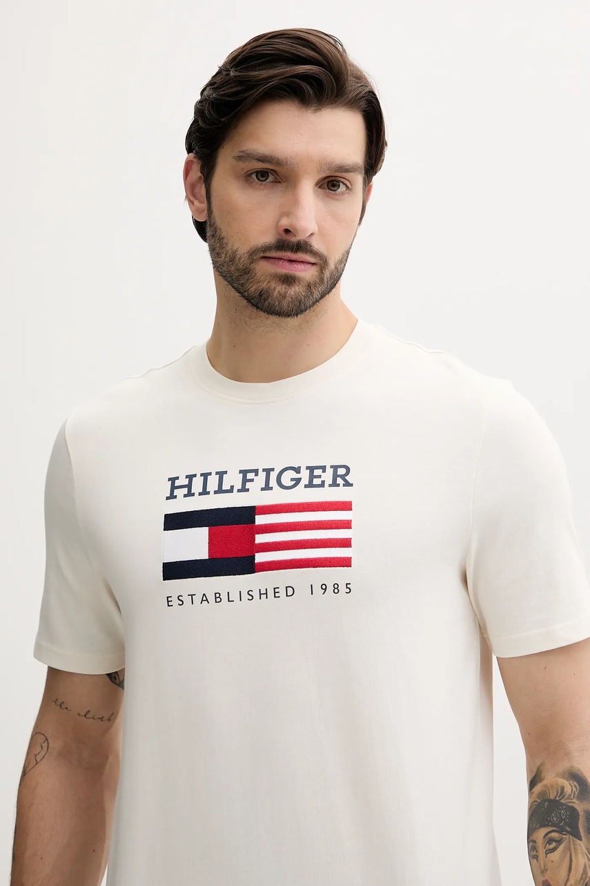 Tommy Hilfiger t-shirt bawełniany męski kolor beżowy z nadrukiem MW0MW39843