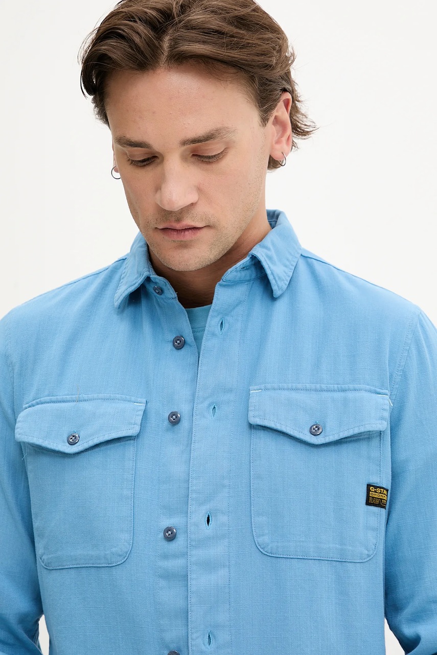 G-Star Raw koszula bawełniana męska kolor niebieski regular z kołnierzykiem klasycznym