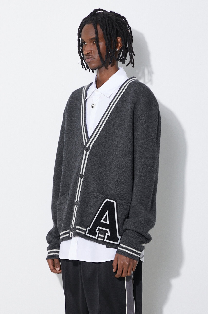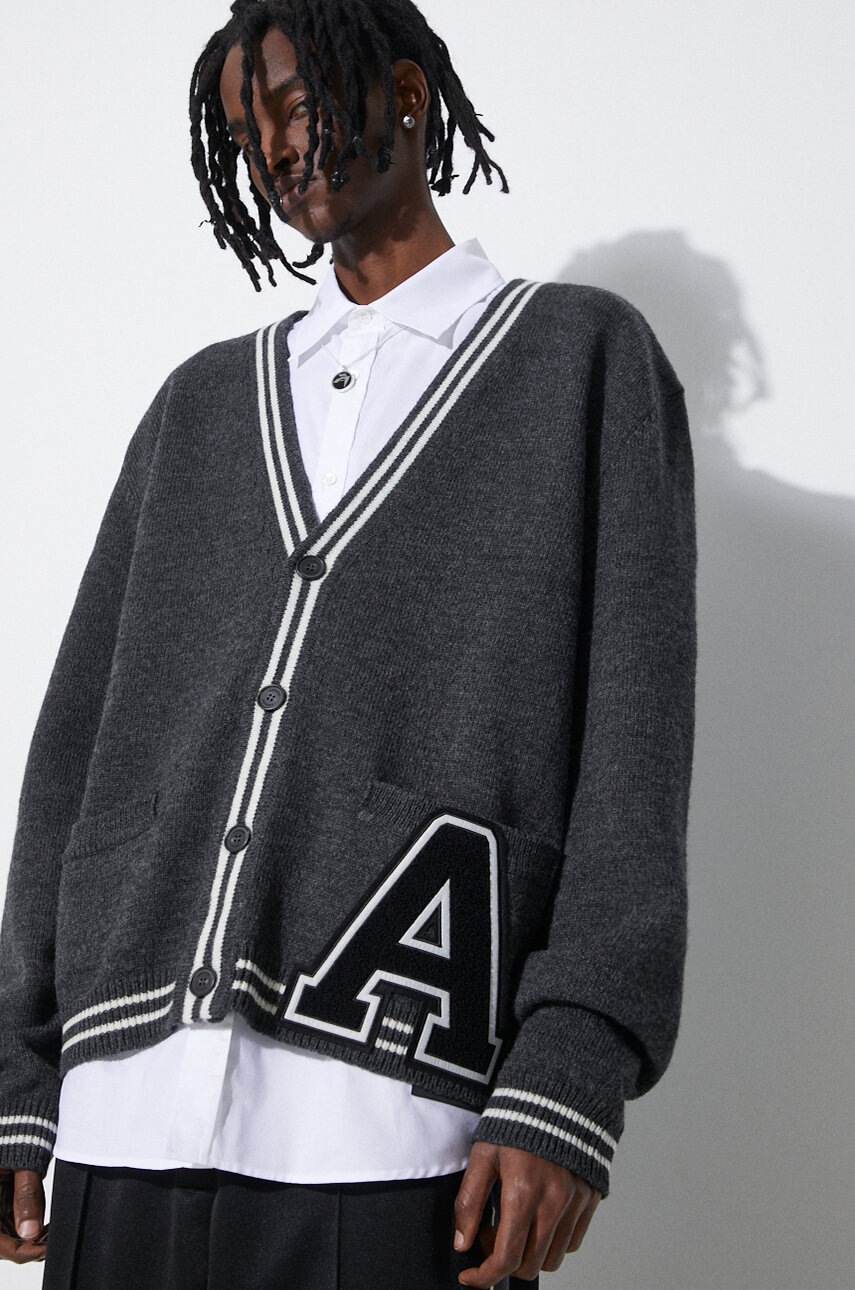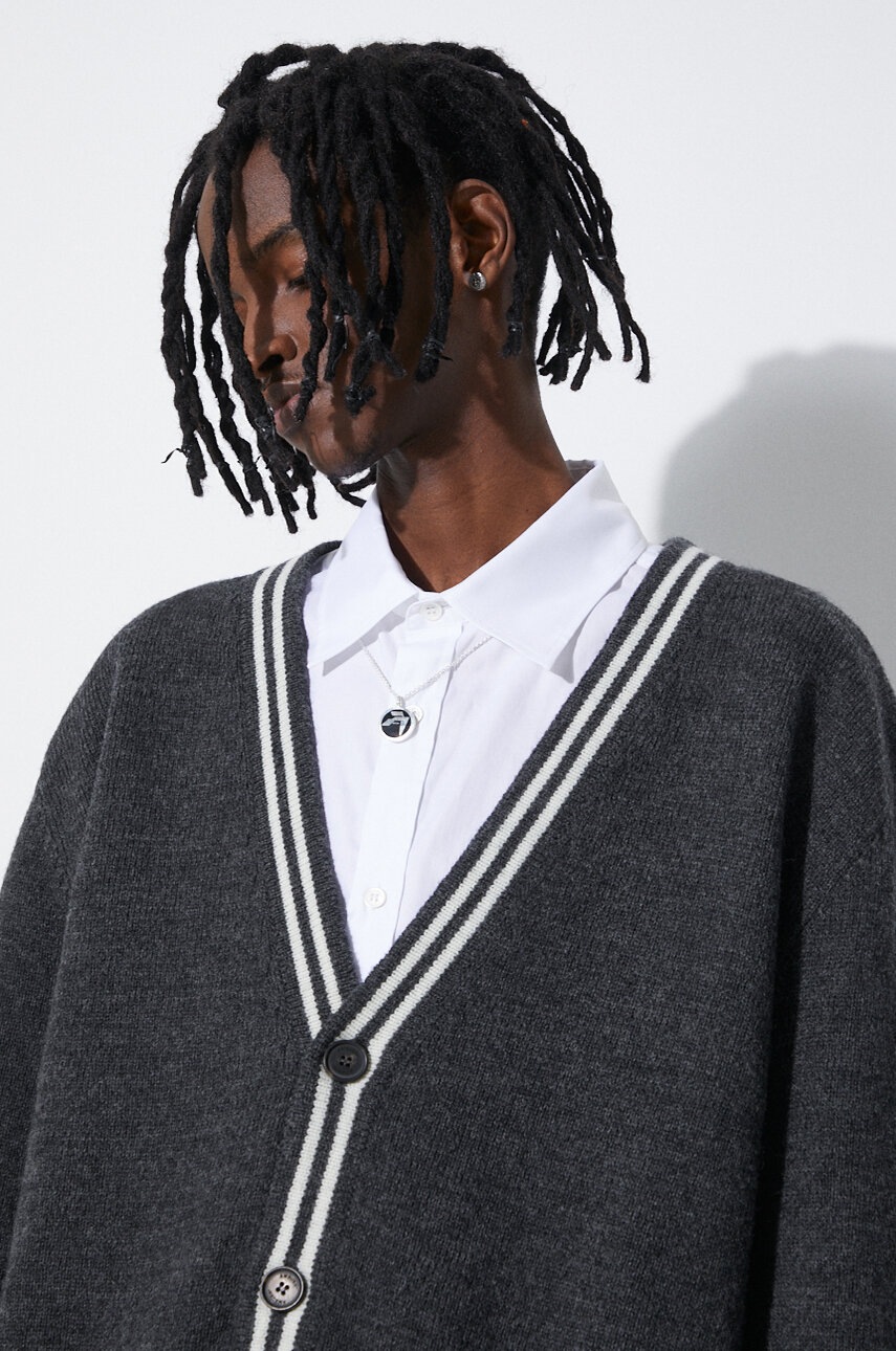 AMBUSH kardigan wełniany A Patch Knit Cardigan kolor szary BMHB003S24KNI