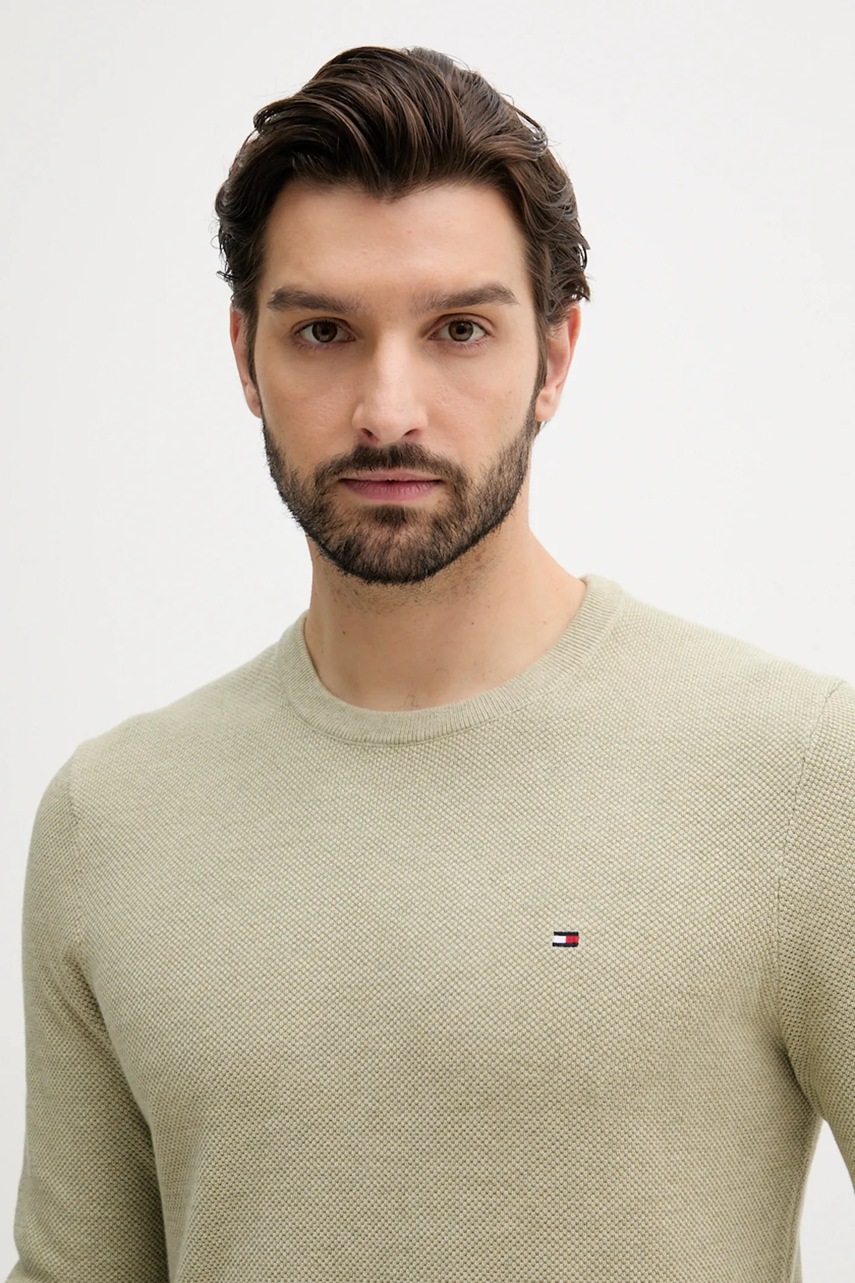 Tommy Hilfiger sweter bawełniany kolor zielony lekki MW0MW36347