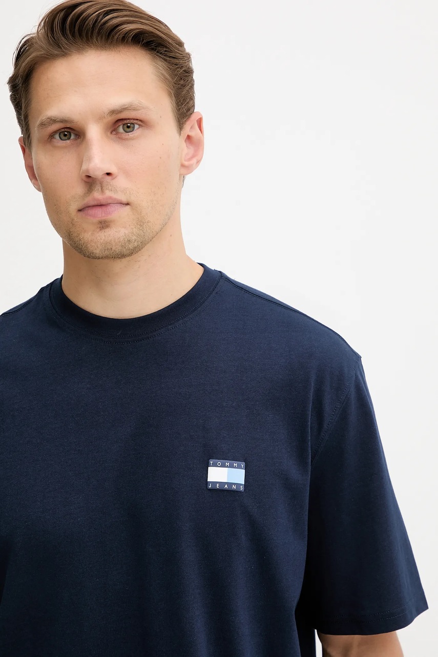 Tommy Jeans t-shirt bawełniany męski kolor granatowy z aplikacją DM0DM21785