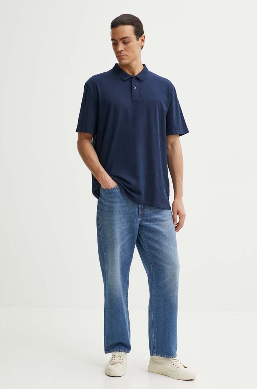 Levi's polo bawełniane kolor niebieski gładki A6735