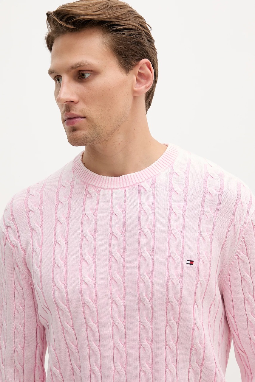 Tommy Hilfiger sweter bawełniany męski kolor różowy lekki MW0MW39524