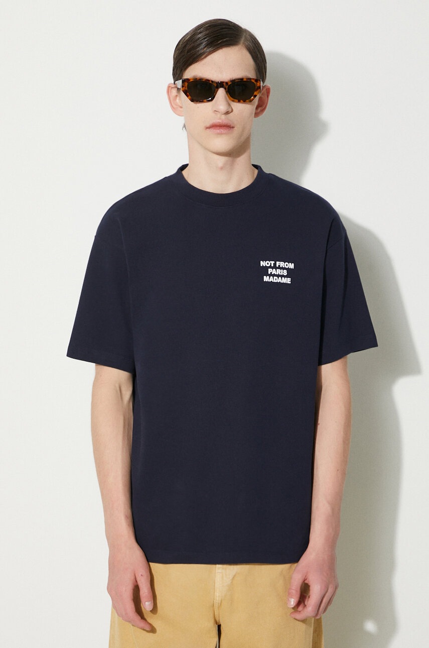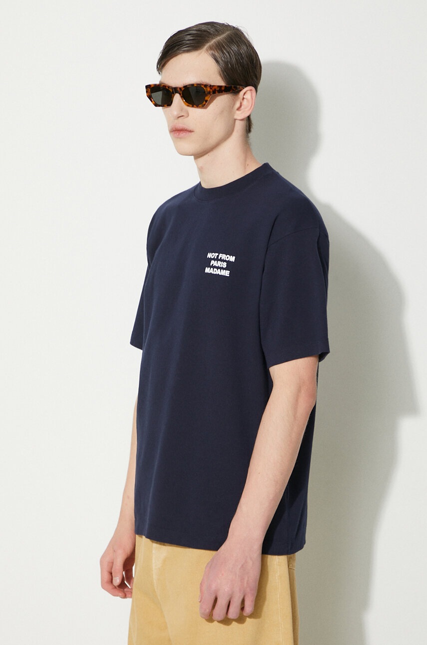 Drôle de Monsieur t-shirt bawełniany Le T-Shirt Slogan męski kolor granatowy z nadrukiem PERM-TS203-CO002-NY