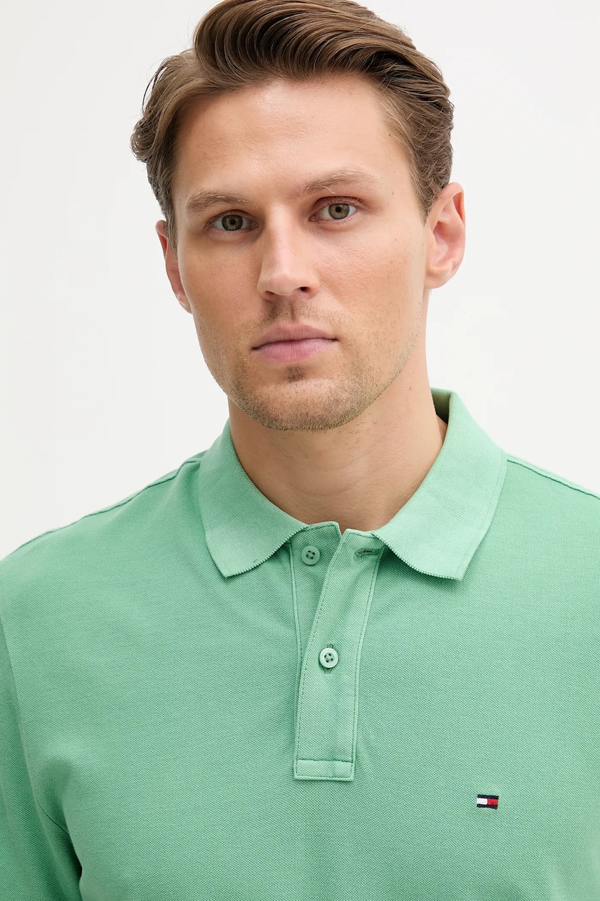 Tommy Hilfiger polo bawełniane kolor zielony gładki MW0MW34757