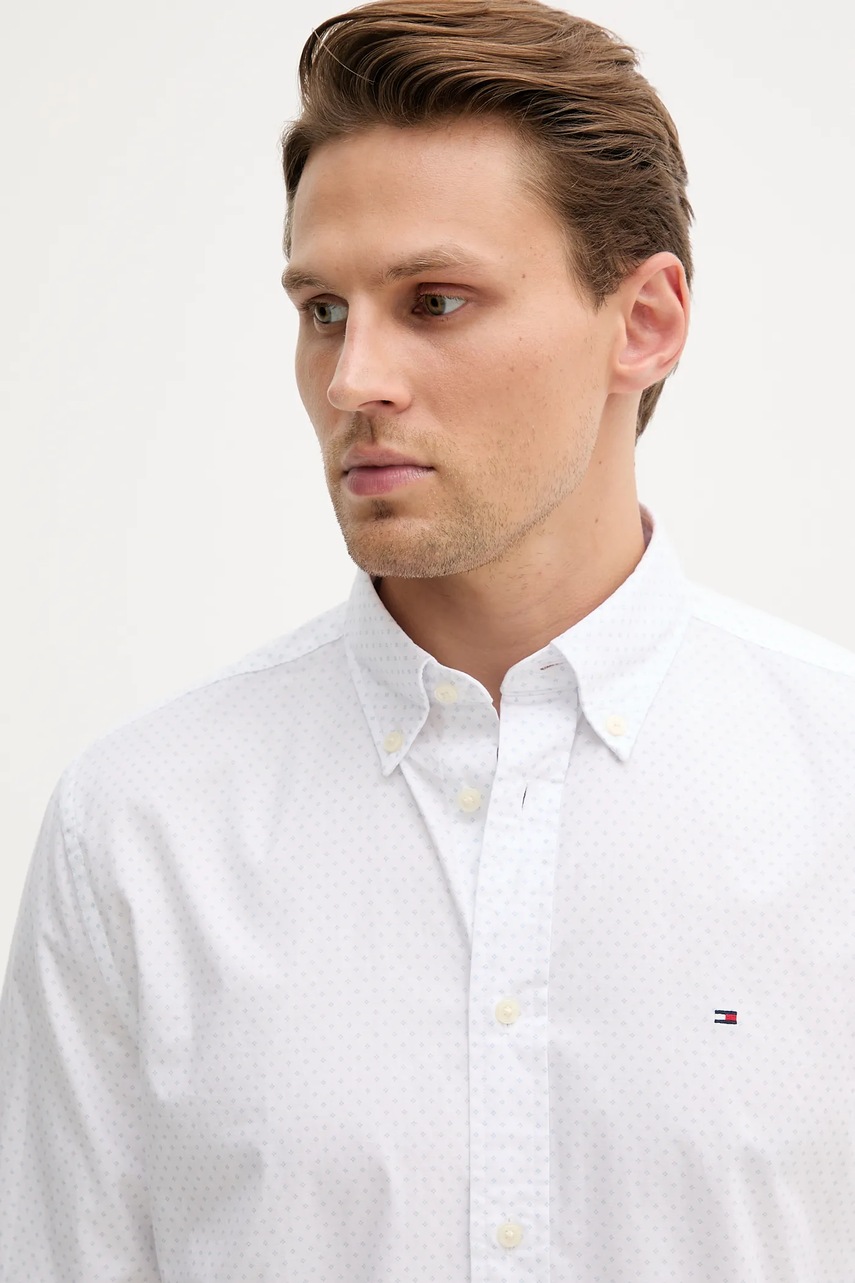 Tommy Hilfiger koszula bawełniana męska kolor biały regular z kołnierzykiem button-down MW0MW39437