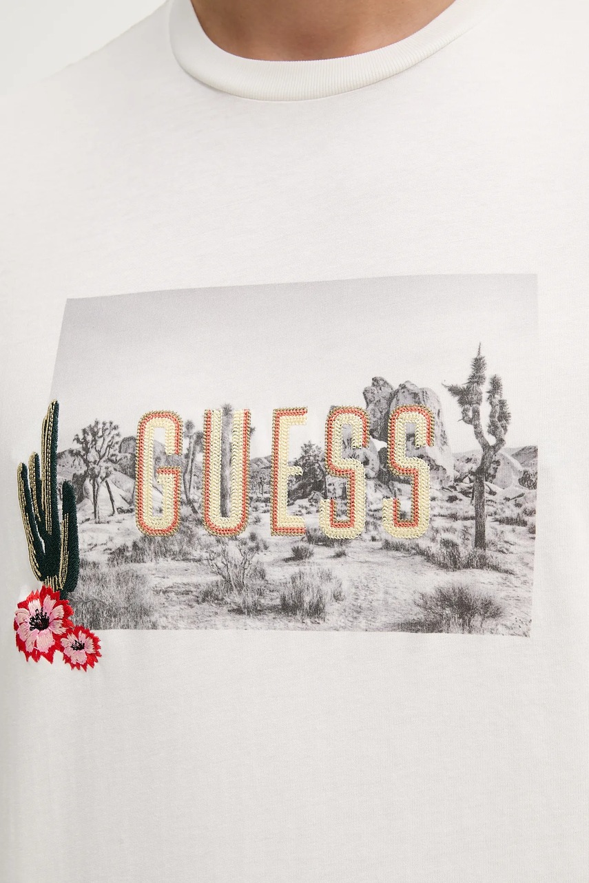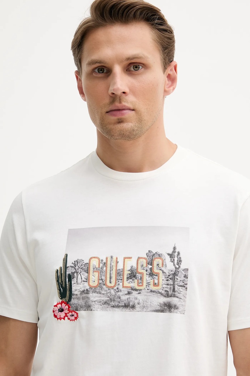 Guess t-shirt bawełniany męski kolor biały z nadrukiem M5YI45 KBW41