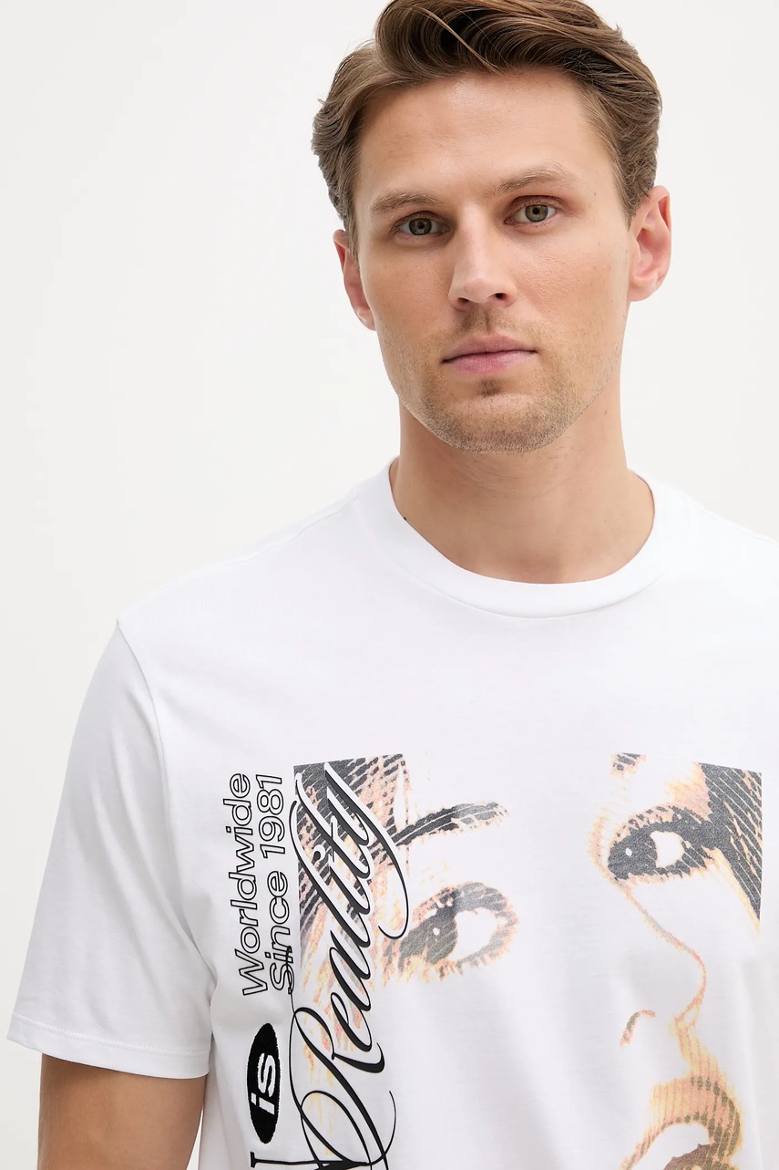 Guess t-shirt bawełniany męski kolor biały z nadrukiem M5YI68 KBW41