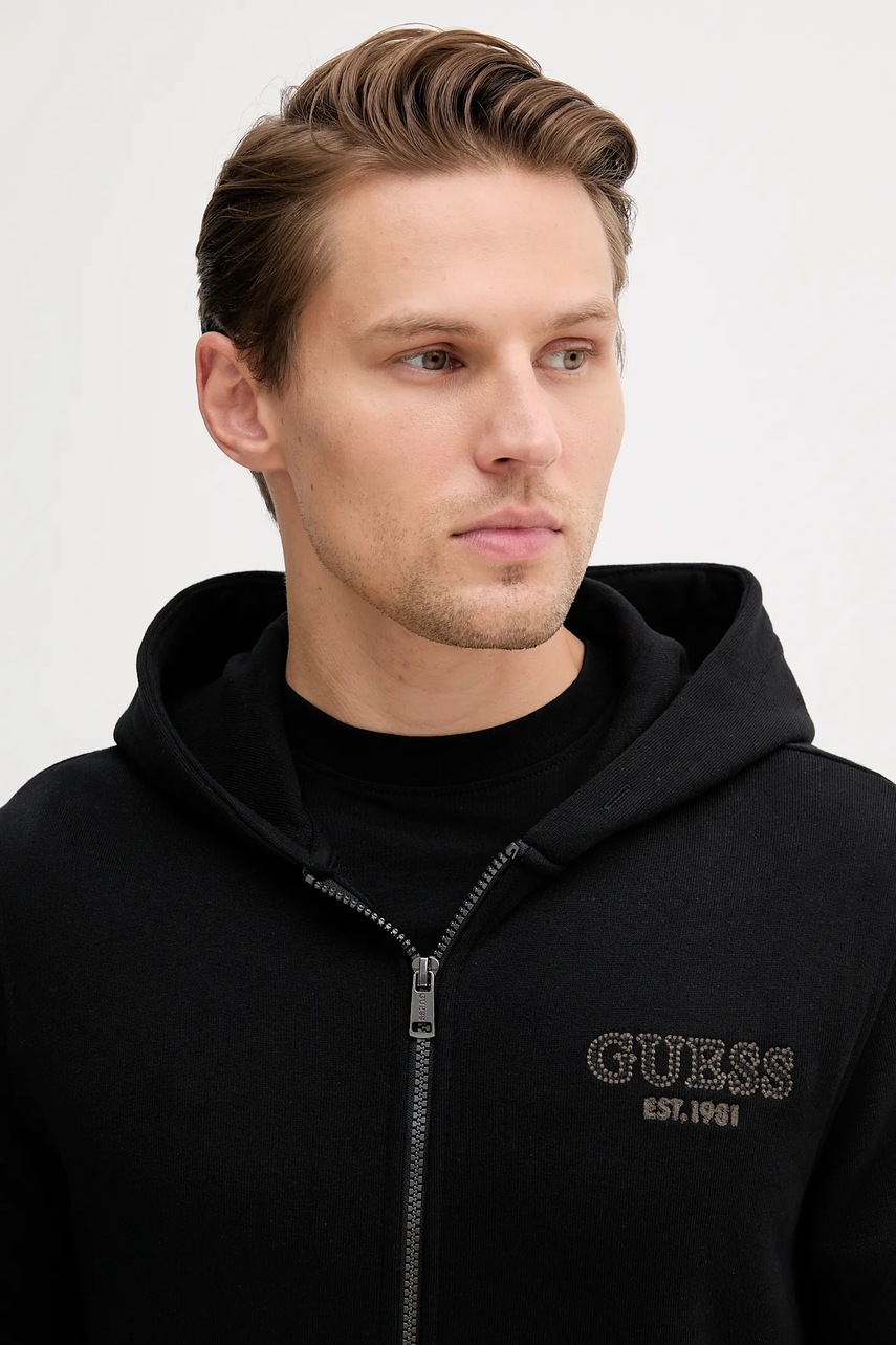 Guess bluza męska kolor czarny z kapturem z aplikacją M5YQ48 KCN01