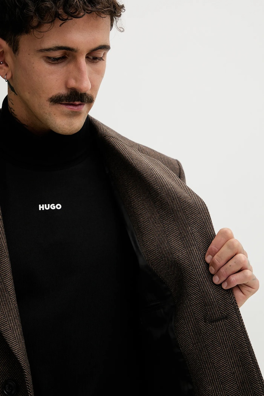HUGO płaszcz z domieszką wełny męski kolor brązowy przejściowy 50542695