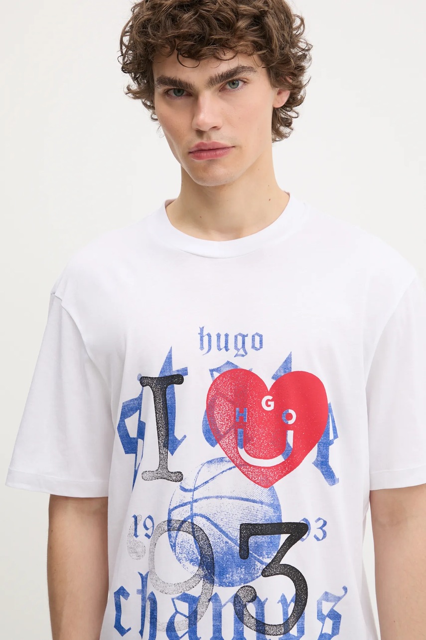 Hugo Blue t-shirt bawełniany męski kolor biały z nadrukiem 50543495