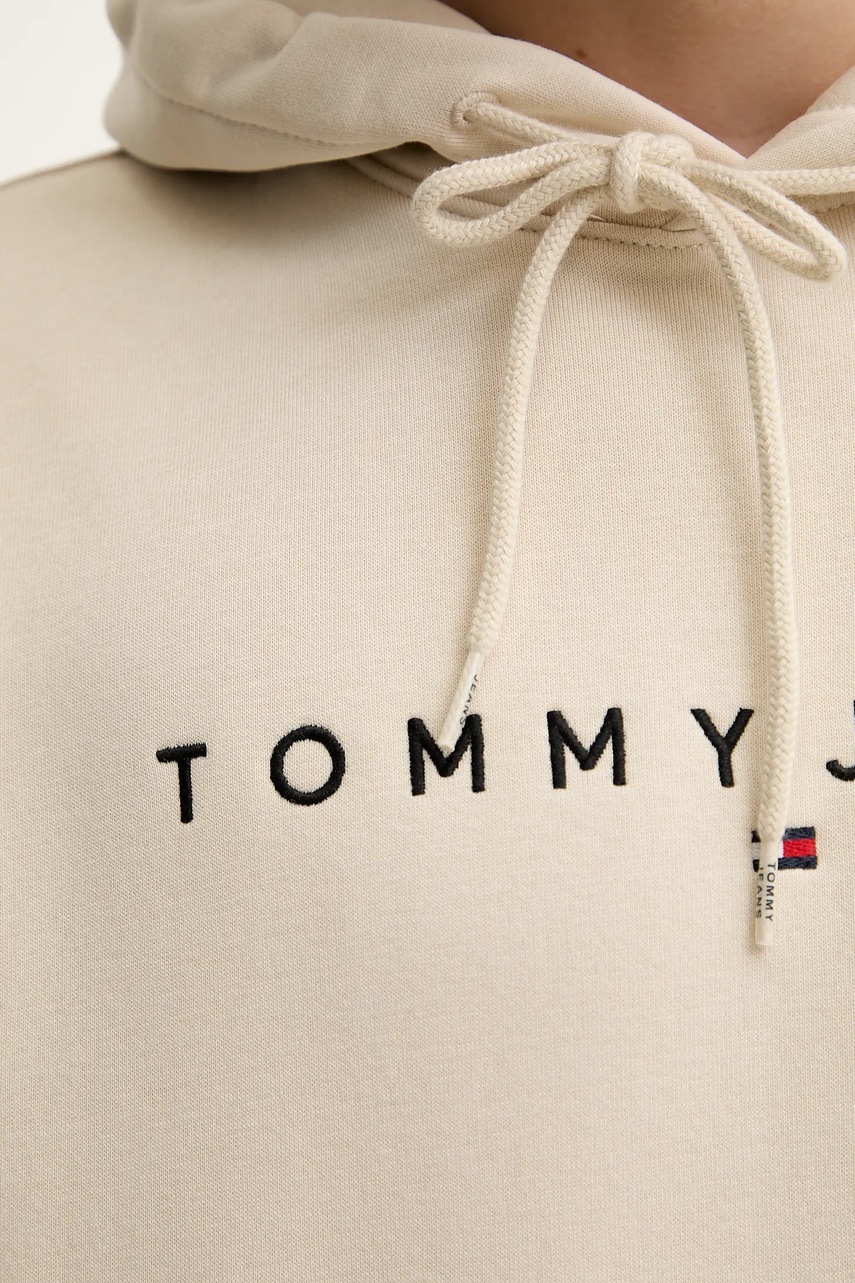 Tommy Jeans bluza męska kolor beżowy z kapturem z nadrukiem DM0DM20746