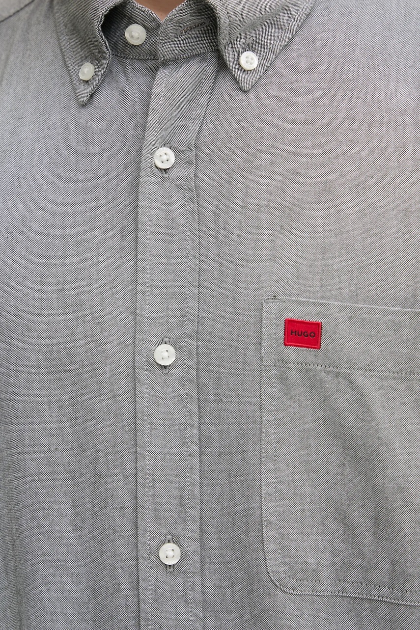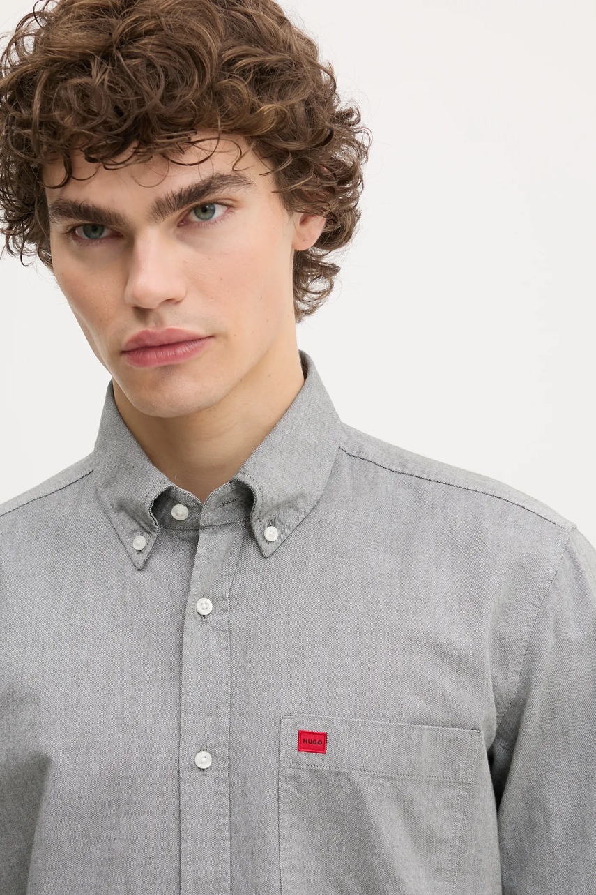 HUGO koszula bawełniana męska kolor szary slim z kołnierzykiem button-down 50479302
