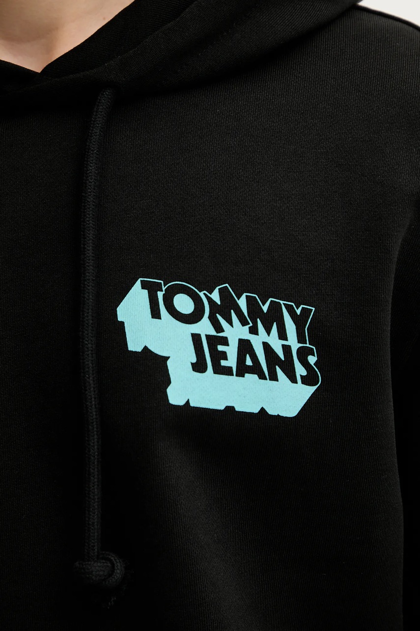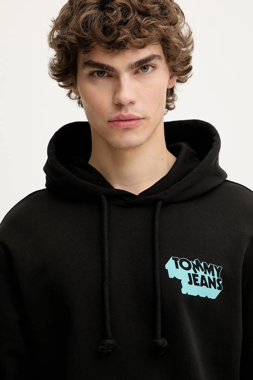 Tommy Jeans bluza bawełniana męska kolor czarny z kapturem z nadrukiem DM0DM21625