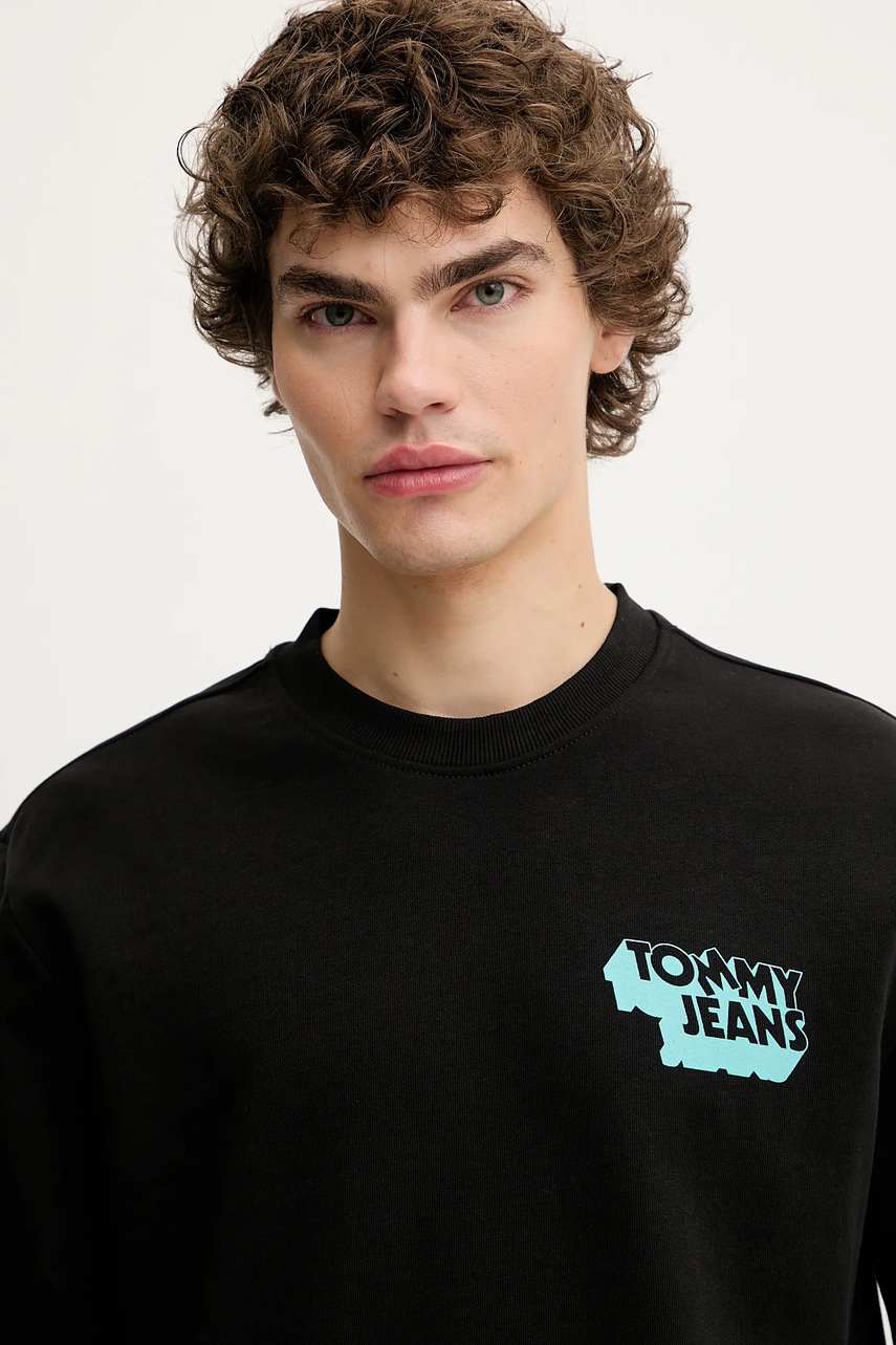 Tommy Jeans bluza bawełniana męska kolor czarny z nadrukiem DM0DM21640