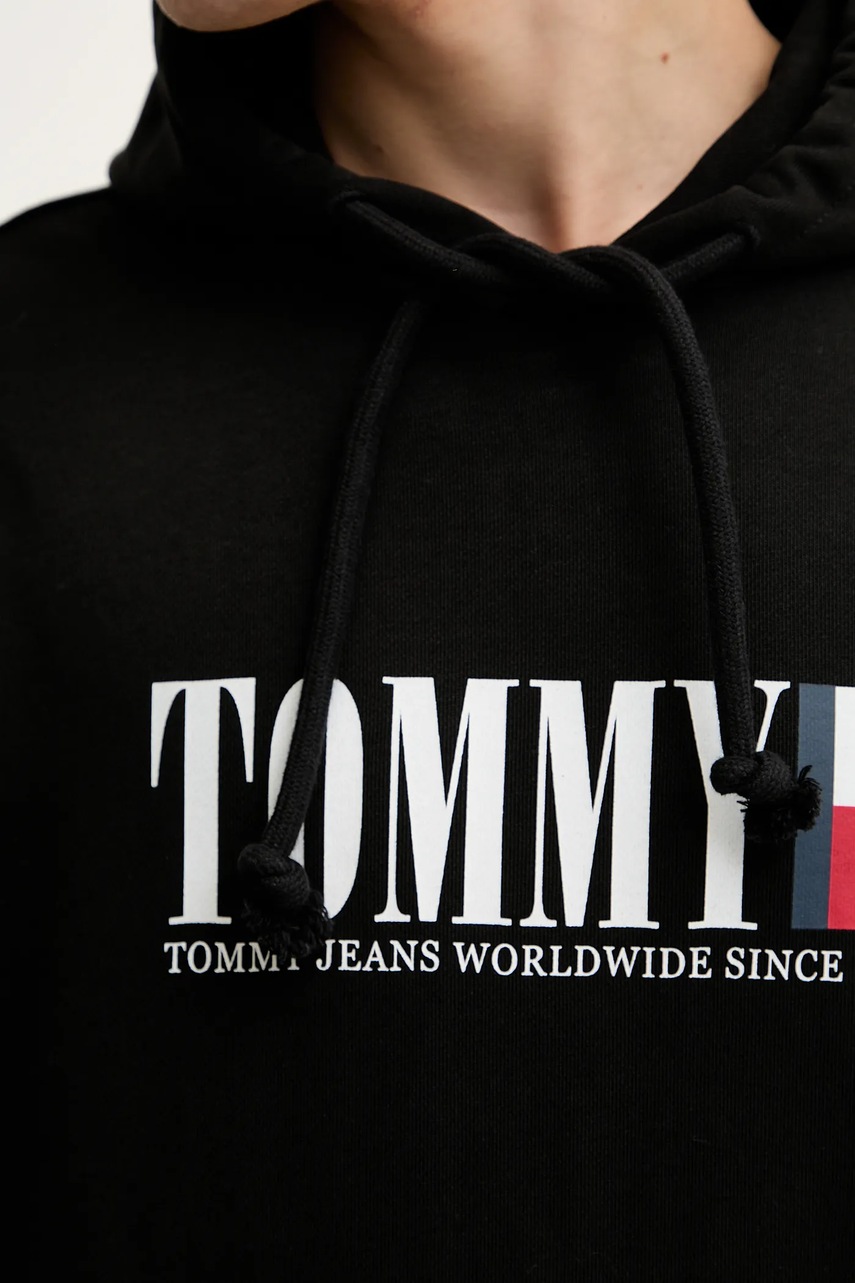 Tommy Jeans bluza bawełniana męska kolor czarny z kapturem z nadrukiem DM0DM22144