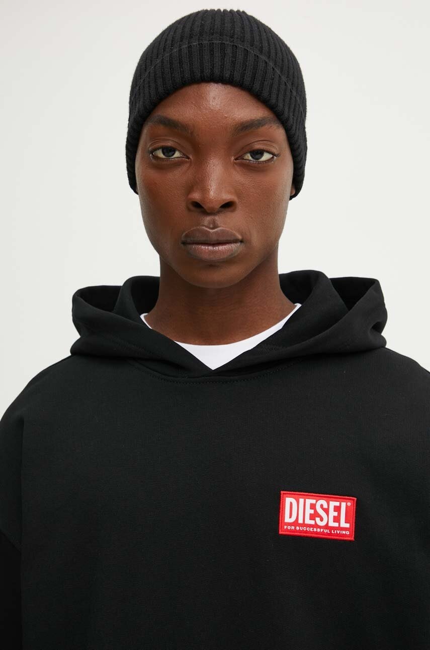 Diesel bluza bawełniana S-BOXT-HOOD-LAB męska kolor czarny z kapturem z aplikacją A14949.0ILAC