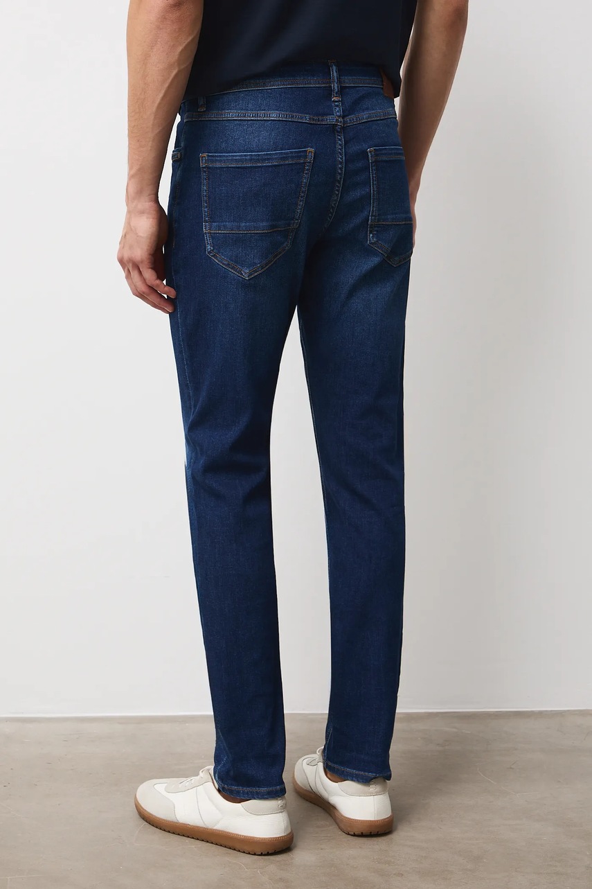 - Fason slim - jeansy o dopasowanym kroju z wąską nogawką, zarówno w okolicach ud, jak i kostki. Podkreślają naturalną linię sylwetki, lecz jej nie opinają - są komfortowe w codziennym użytkowaniu.