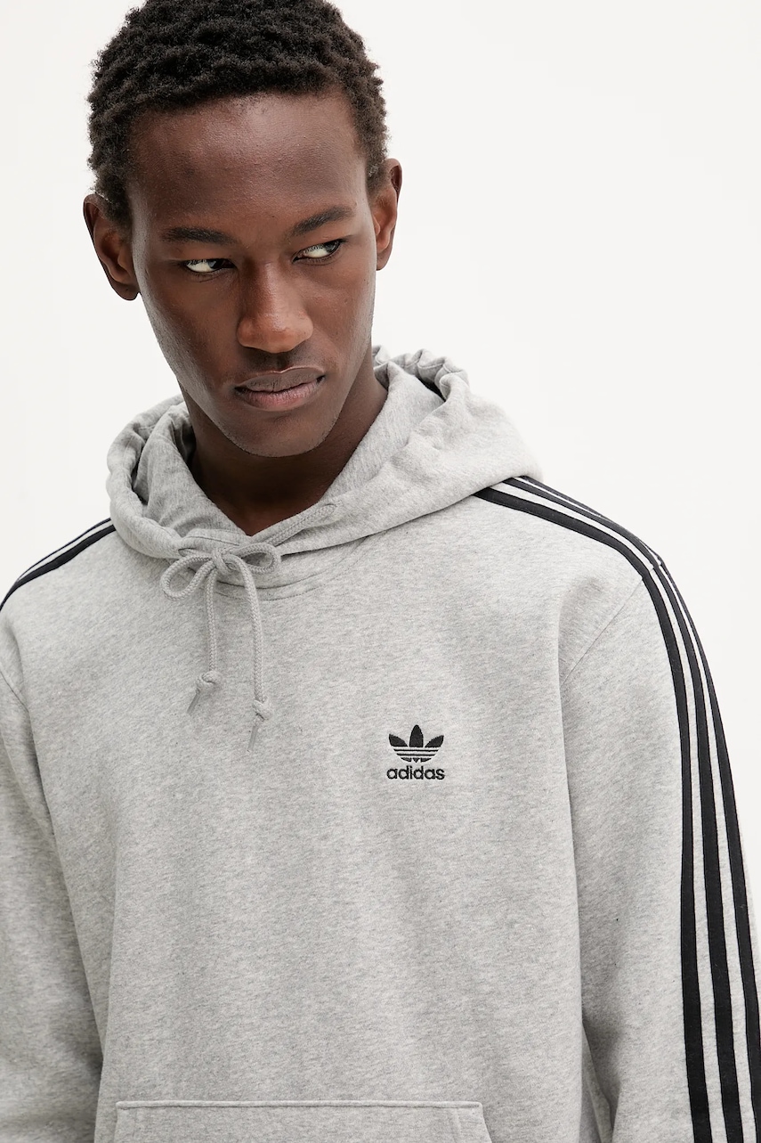 adidas Originals bluza 3-Stripes męska kolor szary z kapturem z aplikacją JY1376