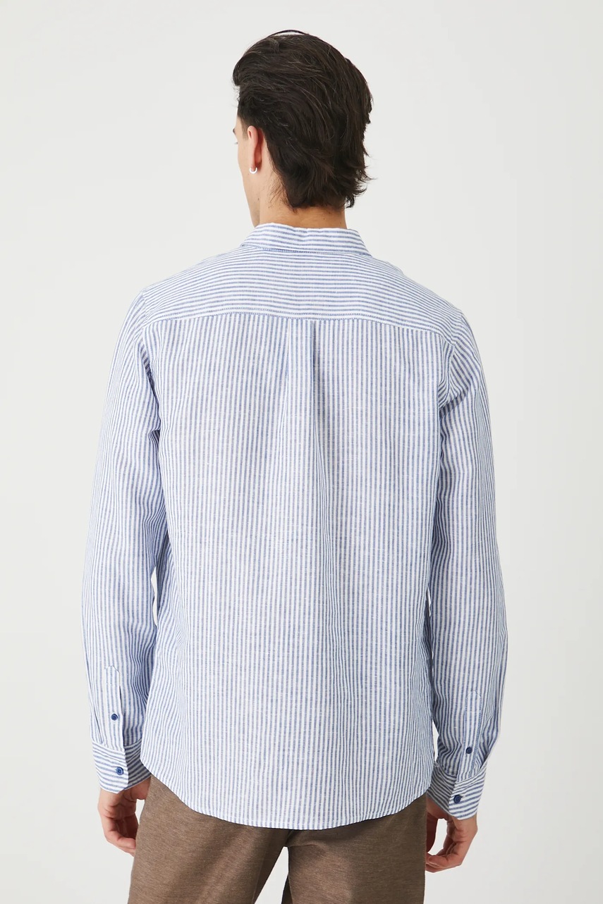 - Koszula w fasonie regular delikatnie dopasowuje się do sylwetki, ale nie podkreśla jej nadmiernie, zapewniając swobodę ruchów.