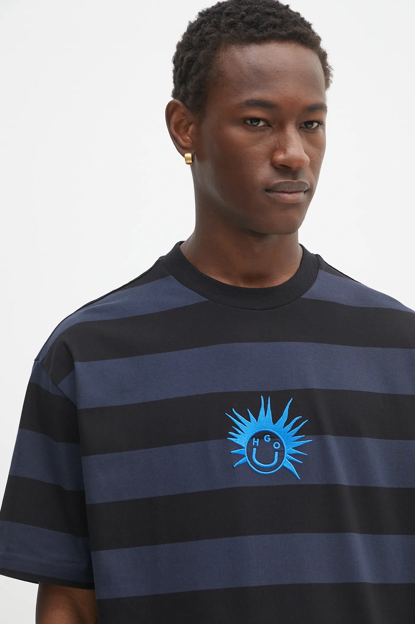Hugo Blue t-shirt bawełniany męski kolor czarny wzorzysty 50543929