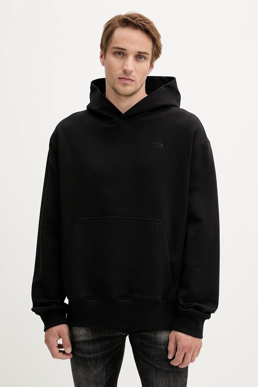 Diesel bluza bawełniana S-MACS-HOOD-MEGOVAL-D męska kolor czarny z kapturem wzorzysta A11304.0GYCJ
