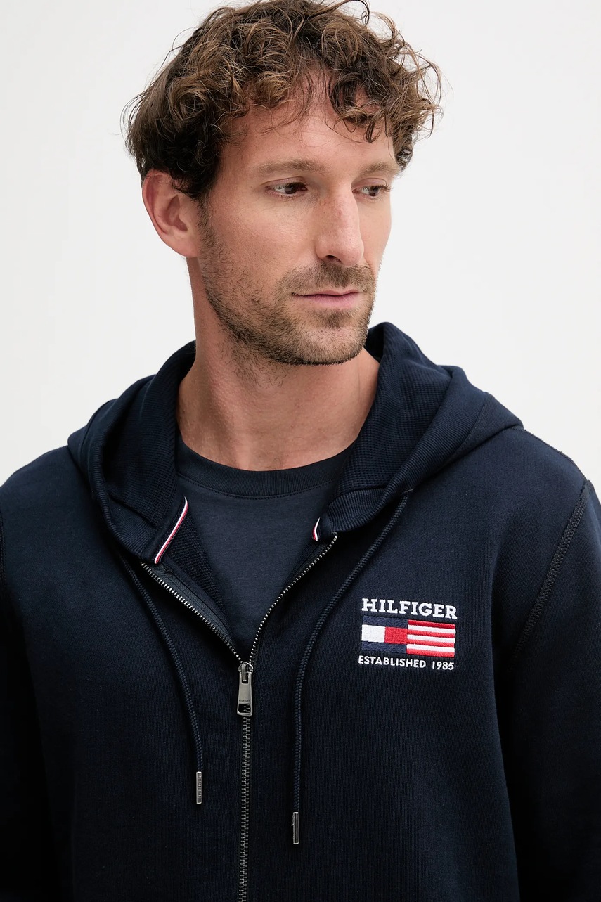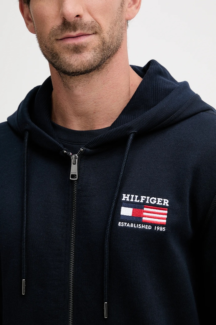 Tommy Hilfiger bluza bawełniana męska kolor granatowy z kapturem gładka MW0MW39691